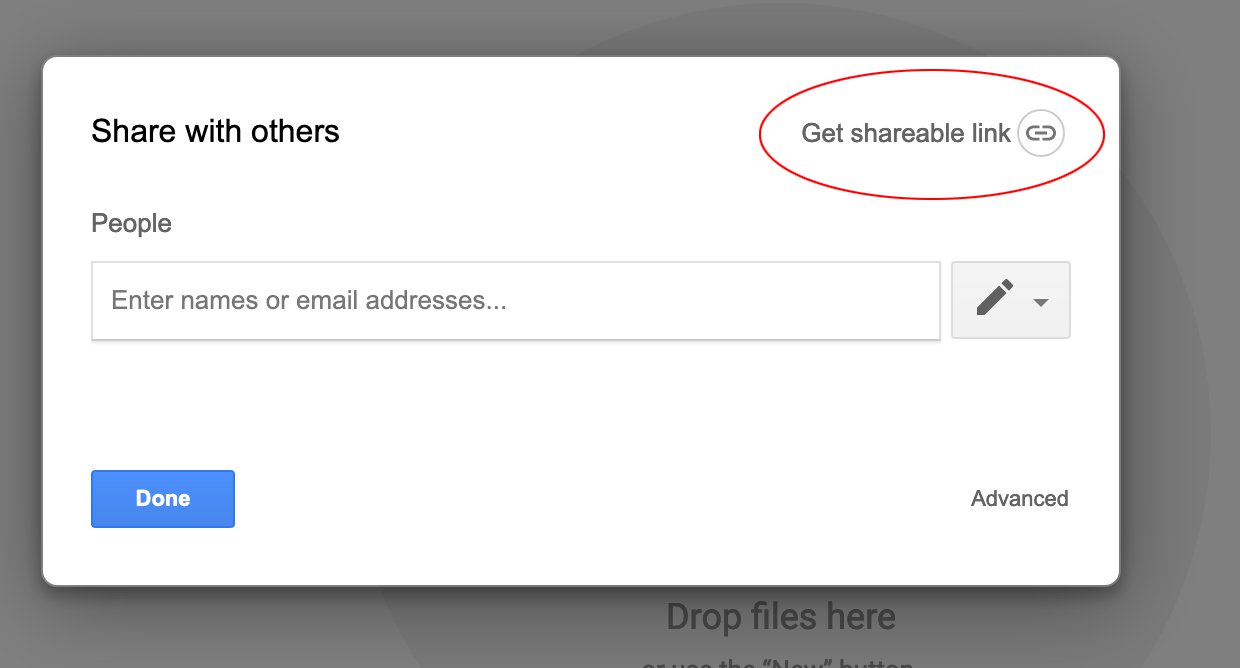 - If a link does not appears like above, click on Get Shareable Link in upper right-hand corner